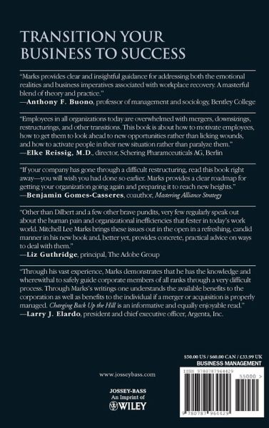 Just as organizations have survived other recessions, they will come through this latest one-but they will need help to recover from it. In this book, acclaimed author and consultant Mitchell Marks offers the wisdom drawn from his many years of experience in helping organizations weather and manage the storms of mergers, acquisitions, and downsizing. Marks shows senior executives, team leaders, HR directors, and consultants how to get jaded employees back on track, carry them through the transition, and motivate them to perform at their best. He provides comprehensive guidance on "transition management," explaining how to approach the new and create a context for recovery. And he details how to revitalize the entire organization-the individual spirit, teams and their performance, and organizational systems. Mitchell Lee Marks (San Francisco, CA) is an independent management consultant specializing in helping firms plan and implement mergers, restructurings, and other transitions. He also consults in areas of CEO coaching, senior team development, HR development, and corporate culture. Previously, he was senior director at Delta Consulting Group and national chair of the HR Management Practice Group at William H. Mercer, Inc.