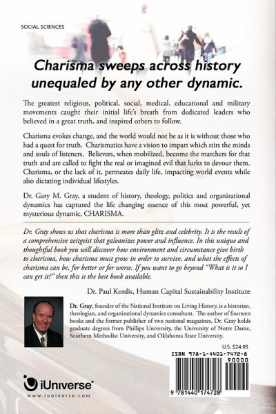 Charisma is more than glitz and celebrity. It is the result of a comprehensive zeitgeist that galvanizes power and influence-and it has been a part of our history since time immortal. Written by Dr. Gary M. Gray, theologian, presidential historian, and organizational consultant, Charisma reveals how environment and circumstance give birth to charisma. Gray seeks to identify the key elements in the dynamic of charismatic leadership based on "truth" and backed by believing disciples as they march to advance a great cause against a real or perceived enemy. Examples of this are historically found in religious, political, social, educational, medical, and military settings. Gray focuses on the rare combination of dynamics necessary for a person believing in a great "truth" to mobilize that truth into a significant movement that confronts an "evil." Culling the archives of history from Jesus Christ to Adolph Hitler, Gray shows how the potential charismatic must speak of great truths, recruit devoted followers, and battle enemies to right the evils of society, or descend into oblivion. Long-term, the movement must find a successor to the cause and institutionalize. Ultimately, Gray reveals that charisma is the single most important dynamic in significant world change, both now and throughout history. Well-researched and meticulously organized, Charisma is a unique and in-depth look at one of the most important, yet often overlooked, dynamics of history.