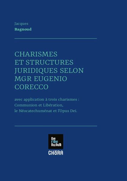 Pourquoi le charisme a t-il été si souvent considéré comme une excentricité ? Une question sur laquelle cette thèse se penche, pour déconstruire nos peurs et retrouver le rôle charnière et constitutionnel du charisme dans l¿Église. Mgr Eugenio Corecco a joué un rôle déterminant dans la réception de Vatican II et l¿élaboration du code de droit canonique actuel. Il a montré le fondement théologique du droit, ce qui lui a permis de dé nir la constitution de l¿Eglise à partir de l¿action directe de Dieu dans la Parole, les Sacrements et les charismes. Ce fondement constitutionnel montre la place charnière des charismes pour la vie de l¿Église. La contribution de Mgr Corecco pour l¿accueil des charismes est précieuse et ce travail montre qüil y a beaucoup d¿éléments qui peuvent encore être davantage mis en valeur au plan canonique. Cette étude de Jacques Bagnoud se distingue par son acuité et son originalité et constitue, un point de référence incontournable pour tous ceux qui veulent approfondir la pensée de Mgr Eugenio Corecco. Das Urheberrecht an bibliographischen und produktbeschreibenden Daten und an den bereitgestellten Bildern liegt bei Informazioni Editoriali, I.E. S.r.l., oder beim Herausgeber oder demjenigen, der die Genehmigung erteilt hat. Alle Rechte vorbehalten.