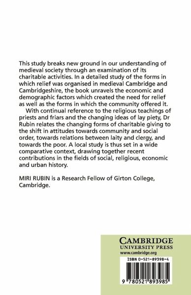This is a detailed study of the forms in which charitable giving was organised in medieval Cambridge and Cambridgeshire, unravelling the economic and demographic factors which created the need for relief as well as the forms in which the community offered it.
