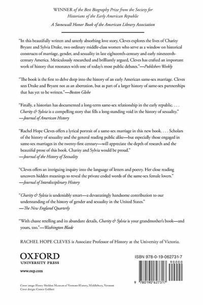 Charity and Sylvia is the intimate history of two ordinary women who lived in an extraordinary same-sex marriage during the early nineteenth century. Based on diaries, letters, and poetry, among other original documents, the research traces the women's lives in sharp detail. Charity Bryant was born in 1777 to a consumptive mother who died a month later. Raised in Massachusetts, Charity developed into a brilliant and strong-willed woman with a passion for her own sex. After being banished from her family home by her father at age twenty, she traveled throughout Massachusetts, working as a teacher, making intimate female friends, and becoming the subject of gossip wherever she lived. At age twenty-nine, still defiantly single, Charity visited friends in Weybridge, Vermont. There she met Sylvia Drake, a pious and studious young woman whose family had moved to the frontier village after losing their Massachusetts farm during the Revolution. The two soon became so inseparable that Charity decided to rent rooms in Weybridge. Sylvia came to join her on July 3, 1807, commencing a forty-four year union that lasted until Charity's death. Over the years, the women came to be recognized as a married couple, or something like it. Charity took the role of husband, and Sylvia of wife, within the marriage. Revered by their community, Charity and Sylvia operated a tailor shop employing many local women, served as guiding lights within their church, and participated in raising more than one hundred nieces and nephews. Most extraordinary, all the while the sexual potential of their union remained an open secret, cloaked in silence to preserve their reputations. The story of Charity and Sylvia overturns today's conventional wisdom that same-sex marriage is a modern innovation, and reveals that early America was both more diverse and more accommodating than modern society imagines.