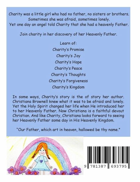 Charity was a little girl. who had no father, no sisters or brothers. Sometimes she was afraid, sometimes lonely. Yet one day, an angel told Charity that she had a heavenly Father. Join charity in her discovery of her Heavenly Father. Learn of: Charity's Promise, Charity's Joy, Charity's Hope, Charity's Peace, Charity's Thoughts, Charity's Forgiveness, Charity's Kingdom.