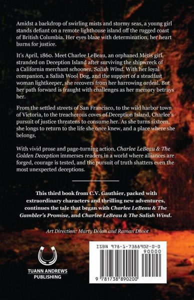 Charlee LeBeau & The Golden Deception Amidst a backdrop of swirling mists and stormy seas, a young girl stands defiant on a remote lighthouse island off the rugged coast of British Columbia. Her eyes blaze with determination, her heart burns for justice. It's April, 1860. Meet Charlee LeBeau, an orphaned Métis girl, stranded on Deception Island after surviving the shipwreck of a California merchant schooner, Salish Wind. With her loyal companion, a Salish Wool Dog, and the support of a steadfast woman lightkeeper, she recovers from her harrowing ordeal. But her path forward is fraught with challenges as her memory betrays her. From the settled streets of San Francisco, to the wild harbor town of Victoria, to the treacherous coves of Deception Island, Charlee's pursuit of justice threatens to consume her. As she turns sixteen, she longs to return to the life she once knew, and a place where she belongs. With vivid prose and page-turning action, Charlee LeBeau & The Golden Deception immerses readers in a world where alliances are forged, courage is tested, and the pursuit of truth shatters even the most unexpected deceptions. Charlee LeBeau Historical Adventures - Book 3