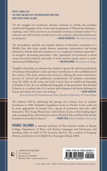 Charles Corm: An Intellectual Biography of a Twentieth-Century Lebanese "Young Phoenician" delves into the history of the modern Middle East and an inquiry into Lebanese intellectual, cultural, and political life as incarnated in the ideas, and as illustrated by the times, works, and activities of Charles Corm (1894–1963).
