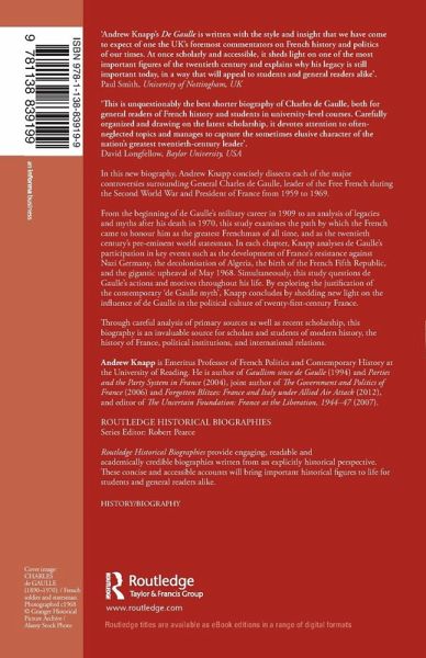 In this new biography, Andrew Knapp concisely dissects each of the major controversies surrounding General Charles de Gaulle, leader of the Free French during the Second World War and President of France from 1959 to 1969.