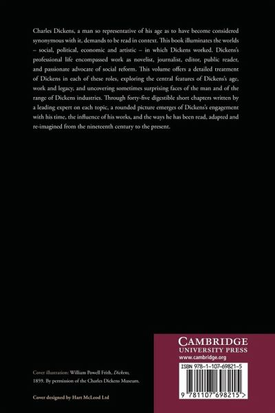 Charles Dickens, a man so representative of his age as to have become considered synonymous with it, demands to be read in context. This book illuminates the worlds - social, political, economic and artistic - in which Dickens worked. Dickens's professional life encompassed work as a novelist, journalist, editor, public reader and passionate advocate of social reform. This volume offers a detailed treatment of Dickens in each of these roles, exploring the central features of Dickens's age, work and legacy, and uncovering sometimes surprising faces of the man and of the range of Dickens industries. Through 45 digestible short chapters written by a leading expert on each topic, a rounded picture emerges of Dickens's engagement with his time, the influence of his works and the ways he has been read, adapted and re-imagined from the nineteenth century to the present.