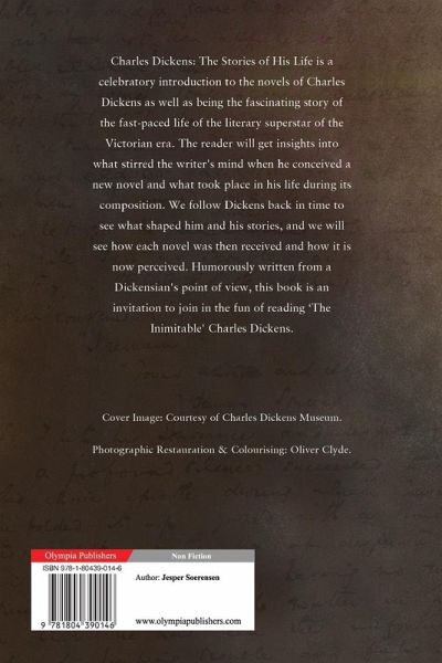 Charles Dickens: The Stories of His Life is a celebratory introduction to the novels of Charles Dickens as well as being the fascinating story of the fast-paced life of the literary superstar of the Victorian era. The reader will get insights into what stirred the writer's mind when he conceived a new novel and what took place in his life during its composition. We follow Dickens back in time to see what shaped him and his stories, and we will see how each novel was then received and how it is now perceived. Humorously written from a Dickensian's point of view, this book is an invitation to join in the fun of reading 'The Inimitable' Charles Dickens.