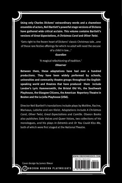 Using only Charles Dickens' extraordinary words and a chameleon ensemble of actors, Neil Bartlett's powerful stage versions of Dickens have gathered wide critical acclaim. This collection includes: Great Expectations: From its opening image of little Pip, alone on the windswept marshes, to the haunted darkness of mad Miss Haversham's cobweb-strewn lair, this adaptation takes its audience on a journey right to the heart of Dickens' great exploration of childhood terrors and hopes - and of adult dreams and regrets. This version was recently directed by Bartlett himself to great acclaim at the Bristol Old Vic. A Christmas Carol: Dickens's story of solitary miser Ebenezer Scrooge, who is taught the true meaning of Christmas by a series of ghostly visitors, has proved one of his most well-loved works, and has profoundly influenced our attitude towards the season. Oliver Twist: Bartlett's powerful version of Oliver Twist brings the dark underbelly of nineteenth-century London back to bold theatrical life. The unforgettable characters inhabit a world filled with images of danger and fear, innocence and hope; a world seen through the eyes of an astonished child. Between them, these adaptations have had over a hundred productions. They have been widely performed by schools, universities and community theatre groups throughout the English-speaking world and theatres that have produced them include London's Lyric Hammersmith, the Bristol Old Vic, the Southwark Playhouse, the Glasgow Citizens, the American Repertory Theatre in Boston and the La Jolla Playhouse (USA).