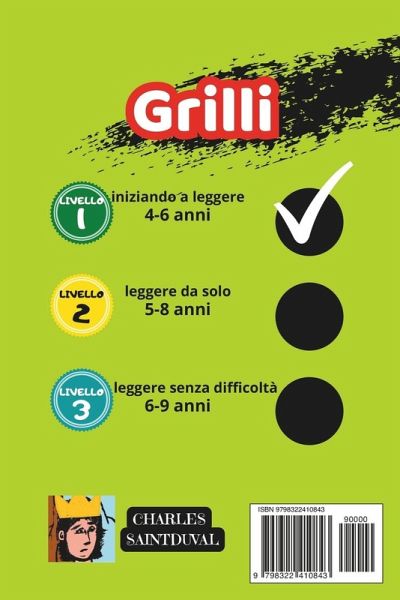 Esplora l'affascinante mondo dei grilli con il nostro libro appositamente pensato per i bambini! Immergiti nella vita notturna di questi insetti canterini e scopri la loro comunicazione attraverso trilli melodiosi. Con illustrazioni accattivanti e un linguaggio adatto ai più piccoli, il nostro libro sul grilli è una finestra sul meraviglioso universo di questi insetti. Come parte della nostra collezione di libri sugli insetti, questo libro sui grilli offre uno sguardo dettagliato su una delle creature più singolari del regno degli insetti. Dalle loro abitudini alimentari alla loro importanza nell'ecosistema, ogni pagina ti condurrà in un emozionante viaggio di scoperta. >INFORMAZIONE : * Progettato per bambini dai 4 ai 6 anni in età prescolare. * Puoi commentare se ti è piaciuto o suggerire eventuali modifiche, verrà letto. vuoi davvero contribuire all'educazione di tuo figlio, sorprendilo con immagini reali di animali. Non aspettare oltre!" Scorri verso l'alto e fai clic su ACQUISTA con 1 clic per ottenere la tua copia! NOMI DELLE SERIE DI LIBRI STAMPATI IN ALTRE LINGUE: SPAGNOLO: Charles y la jungla FRANCESE : Charles et la Jungle ITALIANO : Charles e la Giungla GIAPPONESE : シャルルとジャングル : INGLESE: Charles and the Jungle TEDESCO : Charles und der Dschungel OLANDESE : Charles en de Jungle POLACCO : Charles i dżungla SVEDESE : Charles och djungeln PROSSIME PUBBLICAZIONI SUGLI ANIMALI * INSETTI E RAGNI: FORMICHE, FARFALLE, API, MANTIDI, VESPE, SCARAFAGGI, SCARAFAGGI, GRIlli, CAVALLETTE, LIBELLULE, FALM, ZANZARE, PULCI, TERMITI, COCCINELLE, MOSCHE. * MAMMIFERI : LEONI, VOLPI, LUPI, GIRAFFA, PANDA, PIPISTRELLI, GHEPARDI, TIGRI, ELEFANTI, ORSI, CANI, GATTI, TOPI, CAVALLI, MAIALI, LEOPARDI E SCIMMIE. * RETTILI : SERPENTI, LUCERTOLE, RANA, TARTARUGHE, COCCODRILLI E CAMALEONTI. * PESCI E VITA MARINA: SQUALI, DELFINI, LAMANTANI E BALENE * ALTRI: ANATRE (UCCELLI), Donazioni a sostegno dell'autore : https: //bit.ly/donar_charlessaintduval Correlati: Grilli, Libro dei grilli, libri sui grilli, libro sugli insetti per bambini, libro sugli insetti per bambini, Insetti e ragni, libro sugli insetti in spagnolo, libro sugli insetti