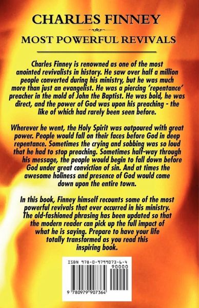 Charles Finney is renowned as one of the most anointed revivalists in history. He saw over half a million people converted during his ministry, but he was much more than just an evangelist. He was a piercing 'repentance' preacher in the mold of John the Baptist. He was bold, he was direct, and the power of God was upon his preaching - the like of which had rarely been seen before. Wherever he went, the Holy Spirit was outpoured with great power. People would fall on their faces before God in deep repentance. Sometimes the crying and sobbing was so loud that he had to stop preaching. Sometimes half-way through his message, the people would begin to fall down before God under great conviction of sin. And at times the awesome holiness and presence of God would come down upon the entire town. In this book, Finney himself recounts some of the most powerful revivals that ever occurred in his ministry. The old-fashioned phrasing has been updated so that the modern reader can pick up the full impact of what he is saying. Prepare to have your life totally transformed as you read this inspiring book.