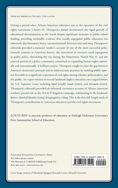 During a period when African-American education was at the epicenter of the civil rights movement, Thompson's Journal documented the rapid growth of educational discrimination in the South despite significant increases in public school funding, providing irrefutable evidence that racially segregated public education was inherently discriminatory, hence, unconstitutional. Between 1932 and 1954, Thompson's editorials provided a nuanced, insider's account of one of the most successful policy research ventures in American history: the movement to overturn racial segregation as public policy, chronicling the rise during the Depression, World War II and the postwar period of a policy community committed to expanding human rights nationally and internationally. A brilliant essayist, Thompson sought to close the gap between America's democratic precepts and its undemocratic practices by molding public opinion favorable to a significant expansion of civil rights among scholars, policymakers and the public. An expert witness in several landmark higher education cases argued before the U. S. Supreme Court including Sipuel (1948), Sweatt (1950) and McLaurin (1950), Thompson's editorials provided an informed, eyewitness account of African-American teachers' pivotal role in the NAACP litigation campaign culminating in the landmark Brown et al v. Board of Education of Topeka et al (1954) desegregation ruling. This is the first, full-length study of Charles H. Thompson's contributions to American education and the civil rights movement.