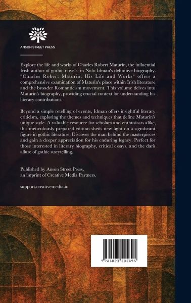 Explore the life and works of Charles Robert Maturin, the influential Irish author of gothic novels, in Niilo Idman's definitive biography. "Charles Robert Maturin: His Life and Works" offers a comprehensive examination of Maturin's place within Irish literature and the broader Romanticism movement. This volume delves into Maturin's biography, providing crucial context for understanding his literary contributions. Beyond a simple retelling of events, Idman offers insightful literary criticism, exploring the themes and techniques that define Maturin's unique style. A valuable resource for scholars and enthusiasts alike, this meticulously prepared edition sheds new light on a significant figure in gothic literature. Discover the man behind the masterpieces and gain a deeper appreciation for his enduring legacy. Perfect for those interested in literary biography, critical essays, and the dark allure of gothic storytelling. This work has been selected by scholars as being culturally important, and is part of the knowledge base of civilization as we know it. This work is in the public domain in the United States of America, and possibly other nations. Within the United States, you may freely copy and distribute this work, as no entity (individual or corporate) has a copyright on the body of the work. Scholars believe, and we concur, that this work is important enough to be preserved, reproduced, and made generally available to the public. We appreciate your support of the preservation process, and thank you for being an important part of keeping this knowledge alive and relevant.