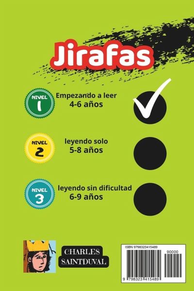 ¡Descubre el mundo majestuoso de las jirafas con nuestro libro ilustrado especialmente diseñado para niños! Sumérgete en la vida de estas increíbles criaturas, con sus cuellos largos y su elegante caminar, y aprende sobre su comportamiento, su alimentación y su hábitat en la sabana africana. Con ilustraciones cautivadoras y un lenguaje adaptado a los más pequeños, nuestro libro de jirafas es una ventana al asombroso universo de estos animales exóticos. Como parte de nuestra colección de libros sobre animales, este libro sobre jirafas ofrece una mirada detallada a una de las criaturas más queridas y admiradas del reino animal. Desde su increíble anatomía hasta su importancia en el ecosistema africano, cada página te llevará a un emocionante viaje de descubrimiento. >INFORMACIÓN: * Diseñado para niños de 4-6 Preescolar. * Puedes comentar si te gustó o sugerir algún cambio, se leerá. "Si realmente quieres contribuir en la educación de tu hijo, sorpréndelo con imágenes reales de los animales. ¡No esperes más!" ¡Desplácese hacia arriba y haga clic en "COMPRAR AHORA" para obtener su copia! NOMBRES DE LA SERIE DE LIBROS IMPRESA EN OTROS IDIOMAS: * ESPAÑOL: Charles y la Jungla * FRANCES: Charles et la Jungle * ITALIANO: Charles e la Giungla * JAPONES: シャルルとジャングル * INGLES: Charles and the Jungle * ALEMÁN: Charles und der Dschungel * NEERLANDÉS: Charles en de Jungle * POLACO: Charles i dżungla * SUECO: Charles och djungeln PRÓXIMAS PUBLICACIONES DE ANIMALES * BICHOS Y ARAÑAS: HORMIGAS, MARIPOSAS, ABEJAS, MANTIS, AVISPAS, ESCARABAJOS, CUCARACHAS, GRILLOS, SALTAMONTES, LIBELULAS, POLILLAS, MOSQUITOS, PULGAS, TERMITAS, MARIQUITAS, MOSCAS. * MAMÍFEROS: LEONES, ZORROS, LOBOS, JIRAFAS, PANDAS, MURCIÉLAGOS, GUEPARDOS, TIGRES, ELEFANTES, OSOS, PERROS, GATOS, RATONES, CABALLOS, CERDOS, LEOPARDOS Y MONOS. * REPTILES: SERPIENTES, LAGARTOS, RANAS, TORTUGAS, COCODRILOS Y CAMALEONES. * PECES Y VIDA MARINA: TIBURONES, DELFINES, MANATÍES Y BALLENAS * OTROS: PATOS (AVES), Donaciones que dan soporte al autor: https: //bit.ly/donar_charlessaintduval Relacionados: Jirafas, libros infantiles sobre jirafa, libro de animales para niños, libro ilustrado de animales, animales exóticos, libros sobre animales en español, libro de zoología.