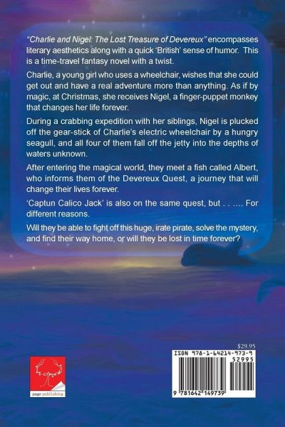 "Charlie and Nigel: The Lost Treasure of Devereux" encompasses literary aesthetics along with a quick 'British' sense of humor. This is a time-travel fantasy novel with a twist. Charlie, a young girl who uses a wheelchair, wishes that she could get out and have a real adventure more than anything. As if by magic, at Christmas, she receives Nigel, a finger-puppet monkey that changes her life forever. During a crabbing expedition with her siblings, Nigel is plucked off the gear-stick of Charlie's electric wheelchair by a hungry seagull, and all four of them fall off the jetty into the depths of waters unknown. After entering the magical world, they meet a fish called Albert, who informs them of the Devereux Quest, a journey that will change their lives forever. 'Captun Calico Jack' is also on the same quest, but . . …. For different reasons. Will they be able to fight off this huge, irate pirate, solve the mystery, ad find their way home, or will they be lost in time forever?