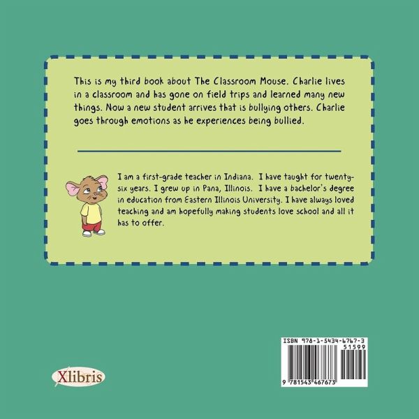 This is the third book about the classroom mouse. Charlie lives in a first-grade classroom, and all the students and teachers are aware of him. Charlie goes through many emotions and experiences things that a child might in an elementary classroom. Charlie the mouse is named after my dad. My parents have always encouraged me throughout my life. I write the series and dedicate it to my dad and mom (Charles and Betty). The fourth book introduces Betty the butterfly. I hope you enjoy reading The Classroom Mouse.