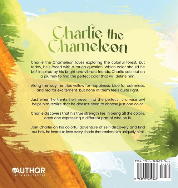 Discover the Magic of Being Yourself-One Color at a Time! In a forest bursting with vibrant colors and playful friends, meet Charlie the Chameleon-a curious little creature on a heartfelt journey to find the perfect color. Should he be yellow like Sunny the Squirrel, blue like Bella the Butterfly, or red like Ruby the Robin? As Charlie experiments with each color, he begins to realize that being just one thing doesn't quite feel right. With guidance from the wise Oliver the Owl, Charlie learns a beautiful truth: he doesn't have to choose just one color-he can be every color, depending on how he feels. And that's what makes him wonderfully unique. "Charlie the Chameleon" is a charming, uplifting story that encourages children to embrace their emotions, celebrate individuality, and find confidence in being exactly who they are. ¿ Perfect for ages 3-9 ¿¿¿¿ Ideal for storytime, classroom discussions, or bedtime reflection ¿¿¿¿ A heartwarming message about self-expression, emotional awareness, and self-love Every child has their own colors. Let Charlie help them shine.