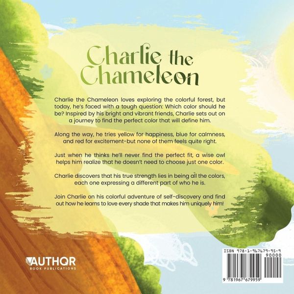 Discover the Magic of Being Yourself-One Color at a Time! In a forest bursting with vibrant colors and playful friends, meet Charlie the Chameleon-a curious little creature on a heartfelt journey to find the perfect color. Should he be yellow like Sunny the Squirrel, blue like Bella the Butterfly, or red like Ruby the Robin? As Charlie experiments with each color, he begins to realize that being just one thing doesn't quite feel right. With guidance from the wise Oliver the Owl, Charlie learns a beautiful truth: he doesn't have to choose just one color-he can be every color, depending on how he feels. And that's what makes him wonderfully unique. "Charlie the Chameleon" is a charming, uplifting story that encourages children to embrace their emotions, celebrate individuality, and find confidence in being exactly who they are. ¿ Perfect for ages 3-9 ¿¿¿¿ Ideal for storytime, classroom discussions, or bedtime reflection ¿¿¿¿ A heartwarming message about self-expression, emotional awareness, and self-love Every child has their own colors. Let Charlie help them shine.