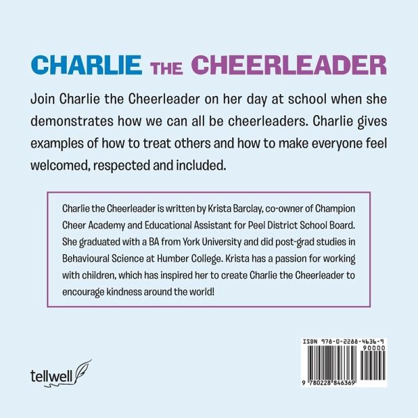 Charlie the Cheerleader is written by Krista Barclay, co-owner of Champion Cheer Academy and Educational Assistant for Peel District School Board. She graduated with a BA from York University and did post-grad studies in Behavioural Science at Humber College. Krista has a passion for working with children, which has inspired her to create Charlie the Cheerleader to encourage kindness around the world!