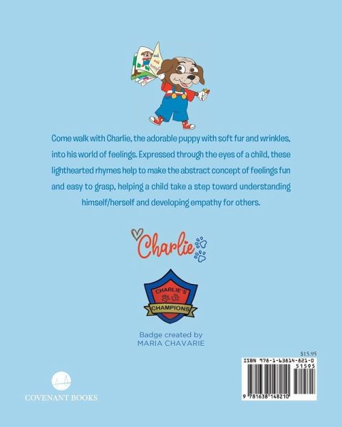 Come walk with Charlie, the adorablepuppy with soft fur and wrinkles, into hisworld of feelings. Expressed through theeyes of a child, these lighthearted rhymeshelp to make the abstract concept offeelings fun and easy to grasp, helping achild take a step toward understandinghimself/herself and developing empathy forothers.