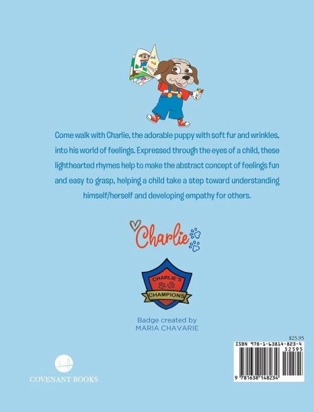 Come walk with Charlie, the adorablepuppy with soft fur and wrinkles, into hisworld of feelings. Expressed through theeyes of a child, these lighthearted rhymeshelp to make the abstract concept offeelings fun and easy to grasp, helping achild take a step toward understandinghimself/herself and developing empathy forothers.