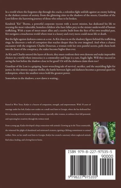 In a world where the forgotten slip through the cracks, a relentless fight unfolds against an enemy lurking in the darkest corners of society. From the glittering cities to the shadows of the streets, Guardian of the Lost follows the harrowing journey of those who refuse to be broken. Kendrick "Kit" Thorne, a powerful corporate tycoon with a secret mission, has dedicated his life to rescuing the most vulnerable, homeless children who have fallen prey to the sinister underworld of human trafficking. With a team of street-smart allies and a resolve built from the fires of his own troubled past, Kit navigates a treacherous world where trust is a luxury and every move could mean life or death. But the fight against darkness comes at a cost. As Kit closes in on the shadowy figures behind the trafficking rings, he discovers a web of corruption that reaches deeper than he ever imagined. And when a chance encounter with the enigmatic Charlie Donovan, a woman with her own painful secrets, pulls them both into the heart of the conspiracy, the stakes become higher than ever. As Kit and Charlie unravel the layers of deceit, they must confront their own demons and make impossible choices in a world where innocence is a commodity and hope is a rare, fragile light. Will they succeed in saving the lost before the shadows close in for good? Or will the darkness claim them too? Guardian of the Lost is a gripping, heart-wrenching tale of survival, sacrifice, and the unyielding fight for justice. In this intense suspense thriller, the battle between light and darkness becomes a personal quest for redemption, where the smallest voices hold the greatest power. Somewhere in the shadows, a new dawn is waiting...