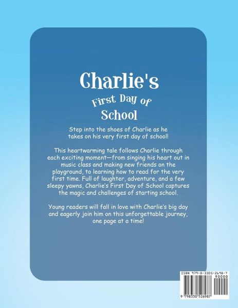 "Charlie's First Day of School" is an engaging first day of school book for kids that's perfect for preschool preparation and helping children overcome back-to-school anxiety. Join Charlie, a curious and lovable character, as he experiences the joys and surprises of his very first day! From singing in music class to playing with new friends on the playground, Charlie's journey is filled with excitement, a few sleepy moments, and all the fun of a kids' school adventure. Ideal for parents, children, and educators, this beautifully illustrated children's picture book supports kindergarten readiness and builds confidence. Charlie's First Day of School helps kids feel prepared and excited for this big milestone. A must-have school readiness book for children, it's sure to become a bedtime favorite for children and parents alike!