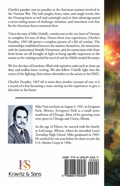 Charlie's paradise was no paradise to the American marines involved in the Vietnam War. The lush jungles, heavy rains, and rough terrain that the Vietcong knew so well and cunningly used to their advantage posed a never-ending source of challenge, irritation, and sometimes even fear for the American forces stationed there.This is the story of Mike Vichelli, a marine sent to the very heart of Vietnam to complete his tour of duty. Drawn from true experiences, Charlie's Paradise, 1967-68 paints a complete picture of a life of combat. The relationships established between the marines themselves, the interaction with the (sometimes) friendly Vietnamese, and the connections with those from home are all brought to light as being equally important to the marine as the training needed for survival and the R&Rs needed for sanity.We live the days of boredom, filled with repetitive tasks such as clean-up duty and endless letter writing. We also follow Vichelli right into the center of the fighting, from minor skirmishes to the action at the DMZ.Charlie's Paradise, 1967-68 is more than another account of war; it is a record of a boy becoming a man, sorting out his experiences to give a direction to his future.