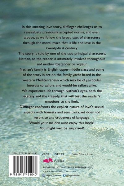 In this amazing love story, d'Iffinger challenges us to re-evaluate previously accepted norms, and even taboos, as we follow the broad cast of characters through the moral maze that is life and love in the twenty-first century. The story is told by one of the two principal characters, Nathan, so the reader is intimately involved throughout and neither bystander or voyeur. Nathan's family is English upper-middle class and some of the story is set on the family yacht based in the western Mediterranean which may be of particular interest to sailors and would-be sailors alike. We experience life through Nathan's eyes, both the ecstasy and the tragedy, that will test the reader's emotions to the limit. D'Iffinger confronts the explicit nature of love's sexual aspects with honesty and sensitivity, yet does not resort to any crudeness of language. Would your maiden aunt enjoy this book? You might well be surprised!