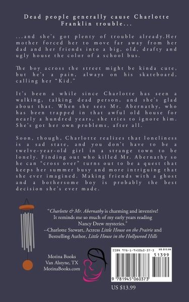 Dead people generally cause Charlotte Franklin trouble... and she's got plenty of trouble already. Her mother's decision move to a town one hundred miles away form her dad and her friends is the worst decision ever. And the house! It's a wreck. Big and old, drafty and ugly, it's the color of a school bus. The boy across the street might be kinda cute, but he's a pain, always on his skateboard, calling her "Kid." Every time she goes outside, there he is, hanging around as if he has nothing better to do than be annoying. It's been a while since Charlotte has seen a walking, talking dead person, and she's glad about that. When she sees Mr. Abernathy, who has been trapped in that awful old house for nearly a hundred years, she tries to ignore him. She's got her own problems, after all. Soon, though, Charlotte realizes that loneliness is a sad state, and you don't have to be a twelve-year-old girl in a strange town to be lonely. Finding out who killed Mr. Abernathy so he can "cross over" turns out to be a quest that keeps her summer busy and more intriguing that she ever imagined. Making friends with a ghost and a bothersome boy is probably the best decision she's ever made.