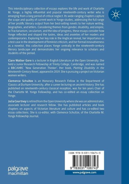 This interdisciplinary collection of essays explores the life and work of Charlotte M. Yonge, a highly influential and popular nineteenth-century writer who is emerging from a long period of critical neglect. Its wide-ranging chapters capture the scope and quality of current work in Yonge studies, addressing the full range of her prolific literary output from her best-selling novels to her nature writing, biographies, and letters. Considering themes from gender, disability, and empire, to Tractarianism, secularism, and the idea of progress, these essays consider how Yonge reflected and shaped the tastes, ideas and anxieties of her readers and contemporaries. Exploring her key role in the Anglican revival, her importance as a test case in the development of feminist criticism, and her formal innovativeness as a novelist, this collection places Yonge centrally in the nineteenth-century literary landscape and demonstrates her ongoing relevance to scholars and students of the period.