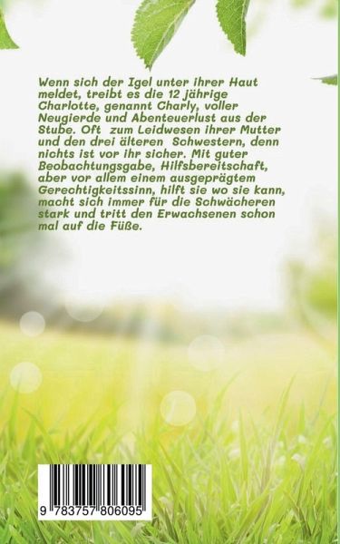 Wenn sich der Igel unter ihrer Haut meldet, treibt es die 12 jährige Charlotte, genannt Charly aus der Stube, manchmal zum Leidwesen ihrer Mutter und den drei älteren Schwestern, in deren Mitte sie wohlbehütet aufwächst. Voller Abenteuerlust und Neugierde ist nichts vor ihr sicher. Mit guter Beobachtungsgabe, Hilfsbereitschaft, aber vor allem einem ausgeprägten Gerechtigkeitssinn, hilft sie wo sie kann, macht sich immer für die Schwächeren stark und tritt den Erwachsenen auch schon mal auf die Füße.