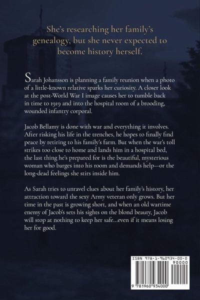 Her family finds her severely lacking, but a grumpy soldier from the past makes it his mission to prove otherwise. What's a girl to do when her loved ones think she's going nowhere fast because she's perfected the art of a dead-end career, no spouse, and no kids? For Sarah Johansson, that's planning the ultimate family reunion in order to change their minds. Too bad touching an image of an old relative tumbles her back in time to 1919 and lands her in the hospital room of a brooding, wounded infantry corporal. Jacob Bellamy is done with war, including the hospital bed that is his latest prison. He craves peace, and isn't prepared for the beautiful, mysterious, and very chaotic woman who barges into his room-or the long-dead feelings she stirs inside him. As Sarah tries to unravel clues about her family's history, her attraction toward the sexy Army veteran only grows. But her time in the past is running short, and when an old wartime enemy of Jacob's sets his sights on the blond beauty, Jacob will stop at nothing to keep her safe...even if it means losing her for good.