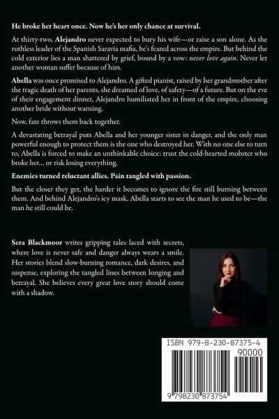 He broke her heart once. Now he's her only chance at survival. At thirty-two, Alejandro never expected to bury his wife-or raise a son alone. As the ruthless leader of the Spanish Saravia mafia, he's feared across the empire. But behind the cold exterior lies a man shattered by grief, bound by a vow: never love again. Never let another woman suffer because of him. Abella was once promised to Alejandro. A gifted pianist, raised by her grandmother after the tragic death of her parents, she dreamed of love, of safety-of a future. But on the eve of their engagement dinner, Alejandro humiliated her in front of the empire, choosing another bride without warning. Now, fate throws them back together. A devastating betrayal puts Abella and her younger sister in danger, and the only man powerful enough to protect them is the one who destroyed her. With no one else to turn to, Abella is forced to make an unthinkable choice: trust the cold-hearted mobster who broke her... or risk losing everything. Enemies turned reluctant allies. Pain tangled with passion. But the closer they get, the harder it becomes to ignore the fire still burning between them. And behind Alejandro's icy mask, Abella starts to see the man he used to be-the man he still could be. Can love survive where loyalty is a weapon and hearts are collateral?