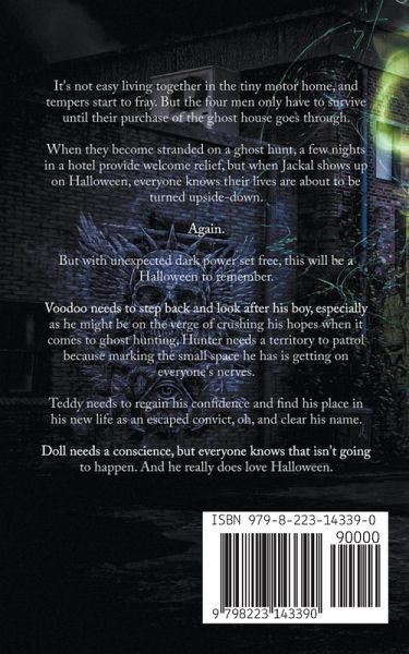 It's not easy living together in the tiny motor home, and tempers start to fray. But the four men only have to survive until their purchase of the ghost house goes through. When they become stranded on a ghost hunt, a few nights in a hotel provide welcome relief, but when Jackal shows up on Halloween, everyone knows their lives are about to be turned upside-down. Again. But with unexpected dark power set free, this will be a Halloween to remember. Voodoo needs to step back and look after his boy, especially as he might be on the verge of crushing his hopes when it comes to ghost hunting Hunter needs a territory to patrol because marking the small space he has is getting on everyone's nerves. Teddy needs to regain his confidence and find his place in his new life as an escaped convict, oh, and clear his name. Doll needs a conscience, but everyone knows that isn't going to happen. And he really does love Halloween.