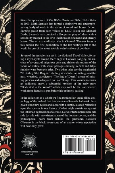 Since the appearance of The White Hands and Other Weird Tales in 2003, Mark Samuels has forged a distinctive and uncompromising body of work in the realm of weird and horror fiction. Earning praise from such voices as T.E.D. Klein and Michael Dirda, Samuels has combined a Borgesian play of ideas with a sensibility steeped in the twin traditions of cinematic and literary horror. The ten extraordinary tales in Charnel Glamour form in this edition the first publication of the last writings left to the world by one of the most notable weird authors of our time. Seven of the ten tales are set in the fictional Thool Valley, forming a myth-cycle around the village of Gallows Langley, the nucleus of a vortex of iniquitous cults and sinister distortions of the fabric of reality, with secret passages running in dark and labyrinthine ways between tales. Two other tales are the magisterial "If Destiny Still Reigns," chilling as its Siberian setting, and the mist-wreathed, valedictory "The End of Death," a case of missing persons and a dispatch on Last Things. This volume includes an additional story, a substantial revision of the early story "Dedicated to the Weird," which may well be the last creative work from Samuels's pen before his untimely passing. In the collection as a whole we find the familiar, dread-filled cosmology of the undead that has become a Samuels hallmark, here given some new twists and laced with a subtle, layered reflection upon the sources in our history of what might sustain us against the inhuman depredations to come. Lurid entertainment here sits side by side with an existentialism of the human species, and the philosophical peers from behind the gruesome. Charnel Glamour is the black swan-song of an author whose reputation will now only grow.