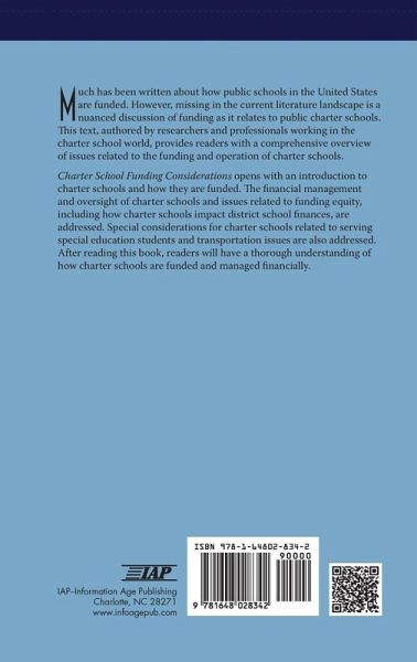 Much has been written about how public schools in the United States are funded. However, missing in the current literature landscape is a nuanced discussion of funding as it relates to public charter schools. This text, authored by researchers and professionals working in the charter school world, provides readers with a comprehensive overview of issues related to the funding and operation of charter schools. The book opens with an introduction to charter schools and how they are funded. The financial management and oversight of charter schools and issues related to funding equity, including how charter schools impact district school finances, are addressed. Special considerations for charter schools related to serving special education students and transportation issues are also addressed. After reading this book, readers will have a thorough understanding of how charter schools are funded and managed financially.
