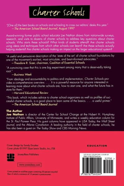 "(One of) the best books on schools and schooling to cross our editors' desks this year." --The American School Board Journal, August 1997 Award-winning former public school educator Joe Nathan draws from nationwide surveys, research, and visits to dozens of charter schools to address key questions about charter schools. Who starts these schools? What kinds of students attAnd? Are charter schools using ideas and techniques from which other schools can learn? Are these schools actually helping students? Are charter schools making an impact on the larger educational system?