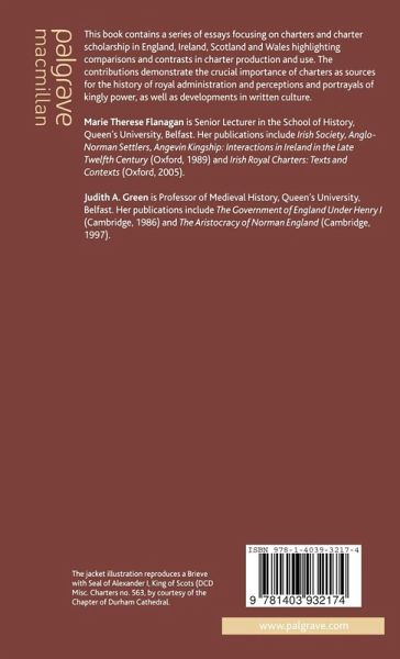 Contributors Acknowledgements Abbreviations Charters and Historians of Britain and Ireland: Problems and Possibilities; D.Bates Athelstan, Charters and the English in Cornwall; C.Insley Address and Delivery in Anglo-Norman Royal Charters; R.Sharpe 'A Lasting Memorial': The Charter of Liberties of Henry I; J.A.Green Regional Variations in the Charters of King Henry II; N.Vincent Before Charters? Property Records in Pre-Anglo-Norman Ireland; M.Herbert Irish Royal Charters and the Cistercian Order; M.T.Flanagan Laudabiliter: Text and Context; M.Haren The Adoption of Brieves in Scotland; D.Broun Culture, Power and the Charters of Welsh Rulers; H.Price List of Works Cited