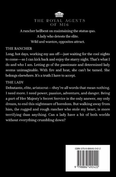 What is sexier than a rough and rugged billionaire cowboy?Team him up with a badass British spy who's also a duchess. A rancher hellbent on maintaining the status quo.A lady who detests the elite.Wild and wanton, opposites attract. THE RANCHER Long, hot days, working my ass off-just waiting for the cool nights to come-so I can kick back and enjoy the starry night. That's what I do and who I am. Letting go of the passionate and determined lady seems unimaginable. With fire and heat, she can't be tamed. She belongs elsewhere. It's a truth I have to accept. THE LADY Debutante, elite, aristocrat-they're all words that mean nothing. I need more. I need power, passion, adventure, and danger. Being a part of Her Majesty's Secret Service is the only answer, my only dream, to end this nightmare of boredom. But walking away from him, the rugged and rough rancher who stole my heart, is more terrifying than anything. Can a lady have a bit of both worlds without everything crumbling down?