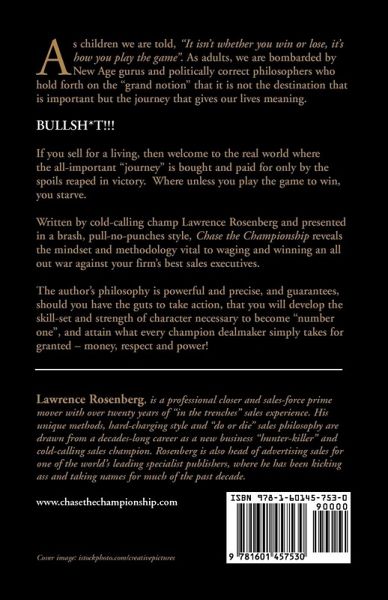 Chase the Championship is the sales manual that goes a step further. The book reveals the mindset and methodology necessary to wage and win an all out war against your firm's best salesmen, and become your company's number one dealmaker!