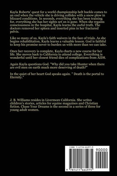 Novel for Christian women ages 16 and over. Kayla Roberts' dreams of becoming a world champion Ladies Barrel Racer are shattered when she is injured in an automobile accident. Prayer and faith in a caring God help Kayla recover from her injuries. When the doctor tells her no more competition, Kayla is devestated. She turns to prayer again. In time she switches gears and leaves Montana to attend college in Southern California. Her life is back on track until her best friend dies from AIDS and her life takes yet another turn.