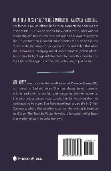 When teen Alison "Ace" Wale's mother is tragically murdered, her father, a police officer, finds three suspects he believes are responsible. But Alison knows they didn't do it, and without adults she can talk to, she must set out on her own to find who did. To protect the innocent, Alison hides the suspects in the forest while she looks for evidence of the real killer. But when she discovers a terrifying secret about another police officer, Alison has to fight against the clock to crack this case before the killer strikes again - or the next victim might just be her.