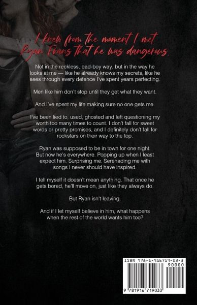 I knew from the moment I met Ryan Evans that he was dangerous. Not in the reckless, bad-boy way, but in the way he looks at me - like he already knows my secrets, like he sees through every defence I've spent years perfecting. Men like him don't stop until they get what they want. And I've spent my life making sure no one gets me. I've been lied to, used, ghosted and left questioning my worth too many times to count. I don't fall for sweet words or pretty promises, and I definitely don't fall for rockstars on their way to the top. Ryan was supposed to be in town for one night. But now he's…mehr