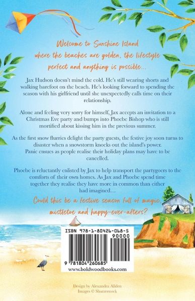 Welcome to Sunshine Island - where the beaches are golden, the lifestyle is perfect and anything is possible. It's December and Jax Hudson doesn't mind the cold. He's still wearing shorts and walking barefoot on the beach. He's looking forward to spending Christmas with his girlfriend until she unexpectantly calls time on their relationship. Alone and feeling very sorry for himself, Jax accepts an invitation to a Christmas Eve party and bumps into Phoebe Bishop who is still mortified about kissing him in the summer. As the first snow flurries delight the party guests, the festive joy soon turns to disaster when a snowstorm knocks out the island's power. Panic ensues as people realise their Christmas plans may have to be cancelled. Phoebe is reluctantly enlisted by Jax to help transport the partygoers to the comforts of their own homes. As Jax and Phoebe spend time together they realise they have more in common than either had imagined... Could this be a Christmas full of magic, mistletoe and happy-ever-afters?