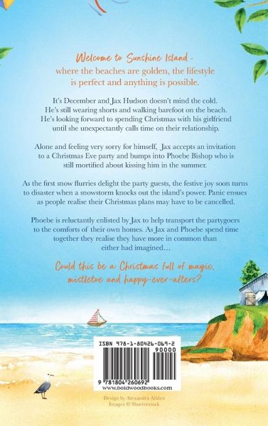 Welcome to Sunshine Island - where the beaches are golden, the lifestyle is perfect and anything is possible. It's December and Jax Hudson doesn't mind the cold. He's still wearing shorts and walking barefoot on the beach. He's looking forward to spending Christmas with his girlfriend until she unexpectantly calls time on their relationship. Alone and feeling very sorry for himself, Jax accepts an invitation to a Christmas Eve party and bumps into Phoebe Bishop who is still mortified about kissing him in the summer. As the first snow flurries delight the party guests, the festive joy soon turns to disaster when a snowstorm knocks out the island's power. Panic ensues as people realise their Christmas plans may have to be cancelled. Phoebe is reluctantly enlisted by Jax to help transport the partygoers to the comforts of their own homes. As Jax and Phoebe spend time together they realise they have more in common than either had imagined... Could this be a Christmas full of magic, mistletoe and happy-ever-afters?