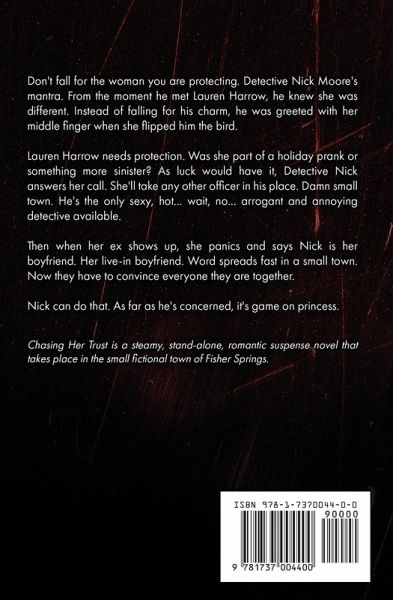 Don't fall for the woman you are protecting. Detective Nick Moore's mantra. From the moment he met Lauren Harrow, he knew she was different. Instead of falling for his charm, he was greeted with her middle finger when she flipped him the bird. Lauren Harrow needs protection. Was she part of a holiday prank or something more sinister? As luck would have it, Detective Nick answers her call. She'll take any other officer in his place. Damn small town. He's the only sexy, hot... wait, no... arrogant and annoying detective available. Then when her ex shows up, she panics and says Nick is her boyfriend. Her live-in boyfriend. Word spreads fast in a small town. Now they have to convince everyone they are together. Nick can do that. As far as he's concerned, it's game on princess.