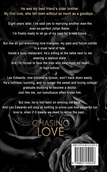 He was my best friend's older brother. My first love, who left town without so much as a goodbye... Eight years later, I've said yes to marrying another man-the ever-so-perfect Julian Baker. I'm finally ready to let go of my past for a new future. But like all gut-wrenching love triangles, my past and future collide in a cruel twist of fate. Inside a busy restaurant, he's sitting at the table next to me wearing a jealous stare. And I'm forced to face the man who destroyed my heart in high school. Lex Edwards, now billionaire tycoon, won't back down easily. He's ruthless, cunning, and no longer the sweet and loving college graduate studying to become a doctor. Just like me, our tumultuous affair broke him. But now, he is hell-bent on winning me back. And Lex Edwards will stop at nothing to prove just how powerful our love is, even if it means we need to relive the past... A forbidden love story about fate, heartache, and second chances.