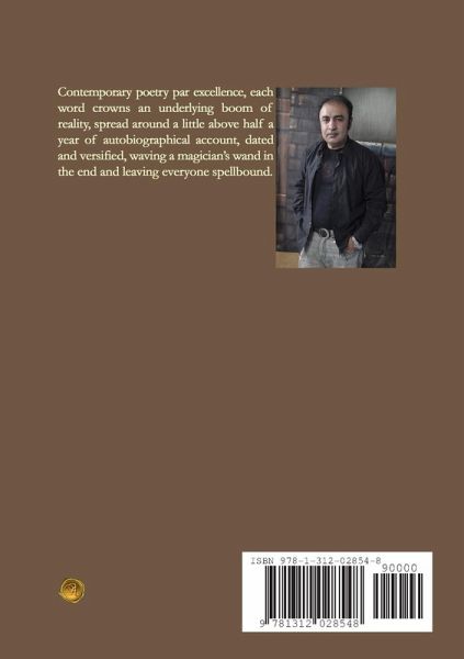 Contemporary poetry par excellence, each word crowns an underlying boom of reality, spread around a little above half a year of autobiographical account, dated and versified, waving a magician's wand in the end and leaving everyone spellbound.