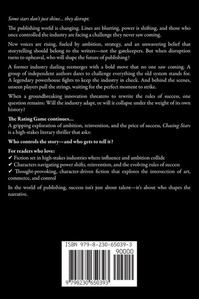 Some stars don't just shine... they disrupt. The publishing world is changing. Lines are blurring, power is shifting, and those who once controlled the industry are facing a challenge they never saw coming. New voices are rising, fueled by ambition, strategy, and an unwavering belief that storytelling should belong to the writers-not the gatekeepers. But when disruption turns to upheaval, who will shape the future of publishing? A former industry darling reemerges with a bold move that no one saw coming. A group of independent authors dares to challenge everything the old system stands for. A legendary powerhouse fights to keep the industry in check. And behind the scenes, unseen players pull the strings, waiting for the perfect moment to strike. When a groundbreaking innovation threatens to rewrite the rules of success, one question remains: Will the industry adapt, or will it collapse under the weight of its own history? ¿ The Rating Game continues... A gripping exploration of ambition, reinvention, and the price of success, Chasing Stars is a high-stakes literary thriller that asks: Who controls the story-and who gets to tell it? For readers who love: ¿ Fiction set in high-stakes industries where influence and ambition collide ¿ Characters navigating power shifts, reinvention, and the evolving rules of success ¿ Thought-provoking, character-driven fiction that explores the intersection of art, commerce, and control In the world of publishing, success isn't just about talent-it's about who shapes the narrative.