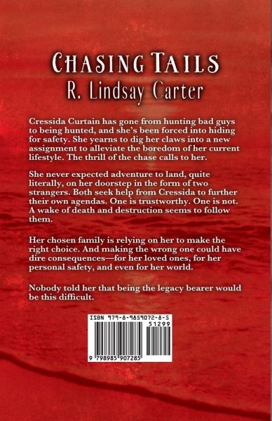 Cressida Curtain has gone from hunting bad guys to being hunted, and she's been forced into hiding for safety. She yearns to dig her claws into a new assignment to alleviate the boredom of her current lifestyle. The thrill of the chase calls to her. She never expected adventure to land, quite literally, on her doorstep in the form of two strangers. Both seek help from Cressida to further their own agendas. One is trustworthy. One is not. A wake of death and destruction seems to follow them. Her chosen family is relying on her to make the right choice. And making the wrong one could have dire consequences-for her loved ones, for her personal safety, and even for her world. Nobody told her that being the legacy bearer would be this difficult.